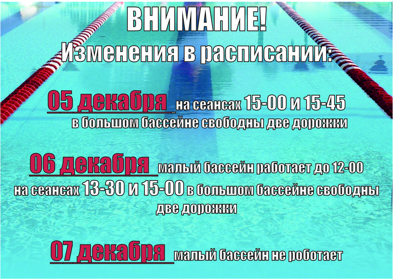Напоминаем, что для посещения учебно-тренировочных занятий в бассейне детям необходимо предоставить анализ кала на яйца глист, соскоб на энтеробиоз и заключение педиатра!